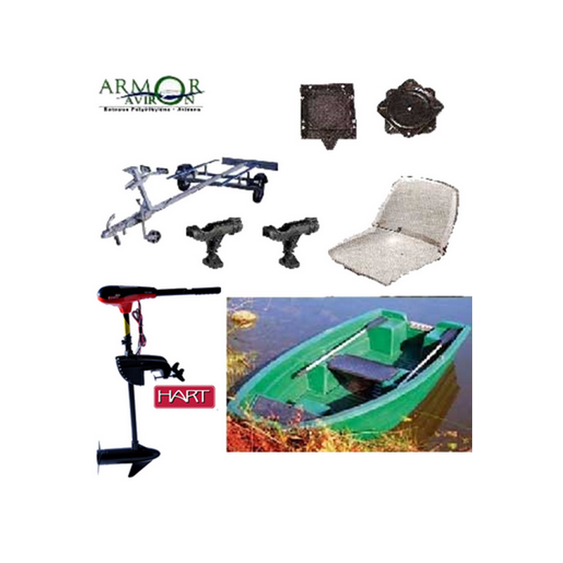 PACK AMOR 320 BARQUE + REMORQUE + MOTEUR RHINO 28Lbs + SIEGE + SUPPORTS DE CANNE :