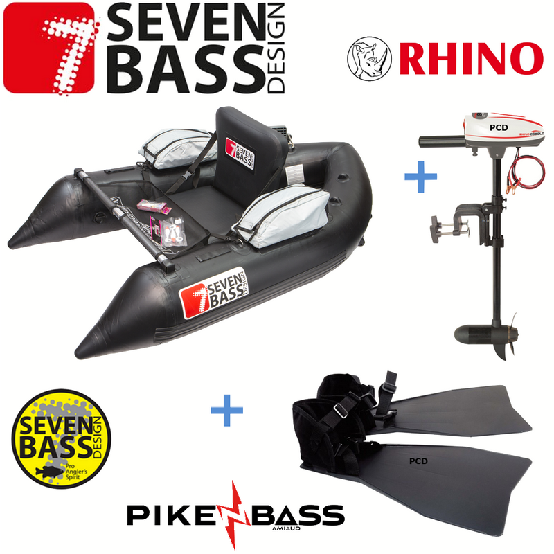 *Ce pack se compose d'un float tube Seven Bass SKULLWAY Noir 170, d'une paire de palmes Pike'N Bass et d'un moteur électrique COBOLD 18Lbs de marque Rhino.