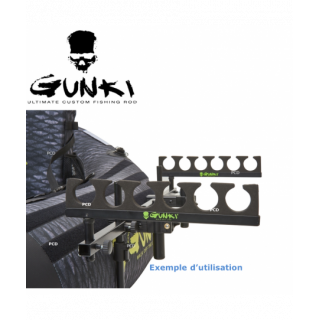 Supports avec six empreintes (diam 40mm). Peuvent se fixer à différents niveaux sur la barre principale GUNKI : trous prévus à cet effet et/ou sur le pas de vis des pieds principaux de la barre GUNKI. Longueur : 33,5cm. Le SET REPOSE CANNES GUNKI POUR FLOAT TUBE est certainement l'accessoire ...