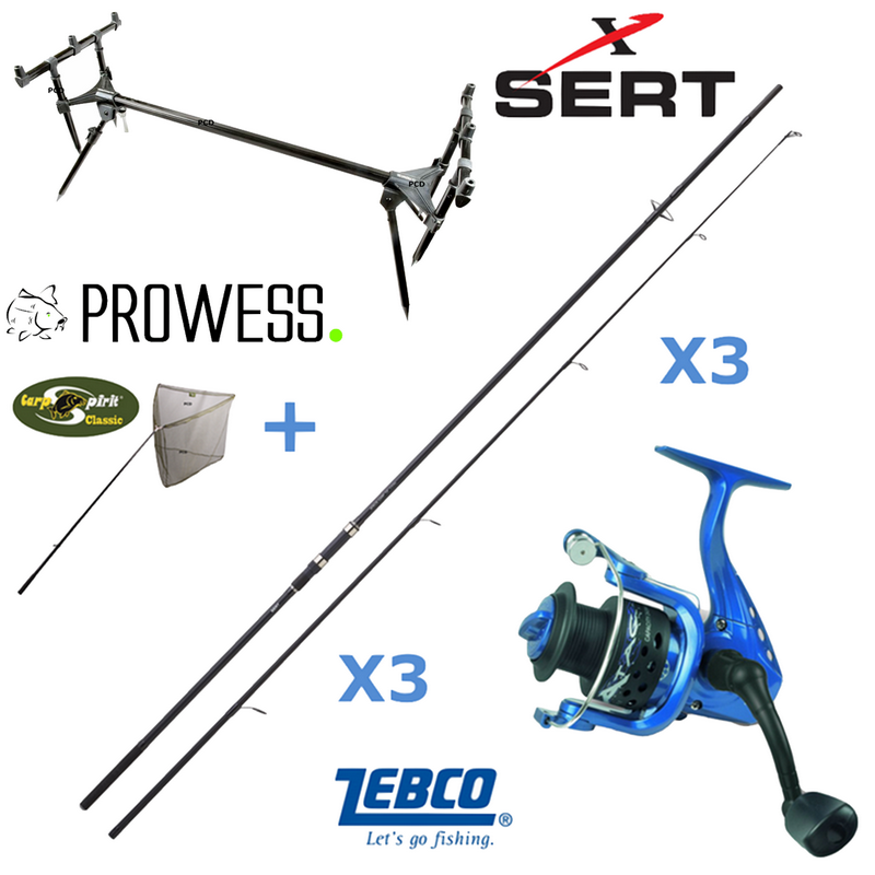 *Ce PACK CARPE se compose de 3 cannes SERT Inscint Carp 12P 3Lbs, de 3 moulinets ZEBCO ATAC 160FD de marque ZEBCO, 1 épuisette Carp Spirit Classic et d'un rod pod 3 cannes SCORPIUM de marque PROWESS.